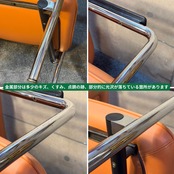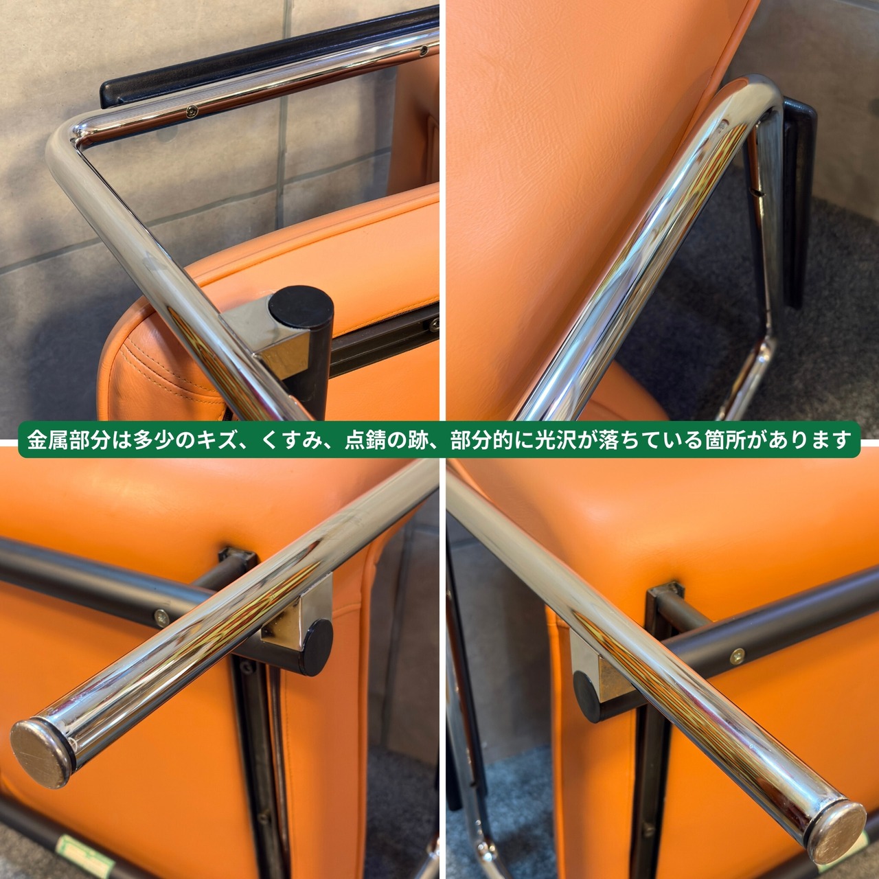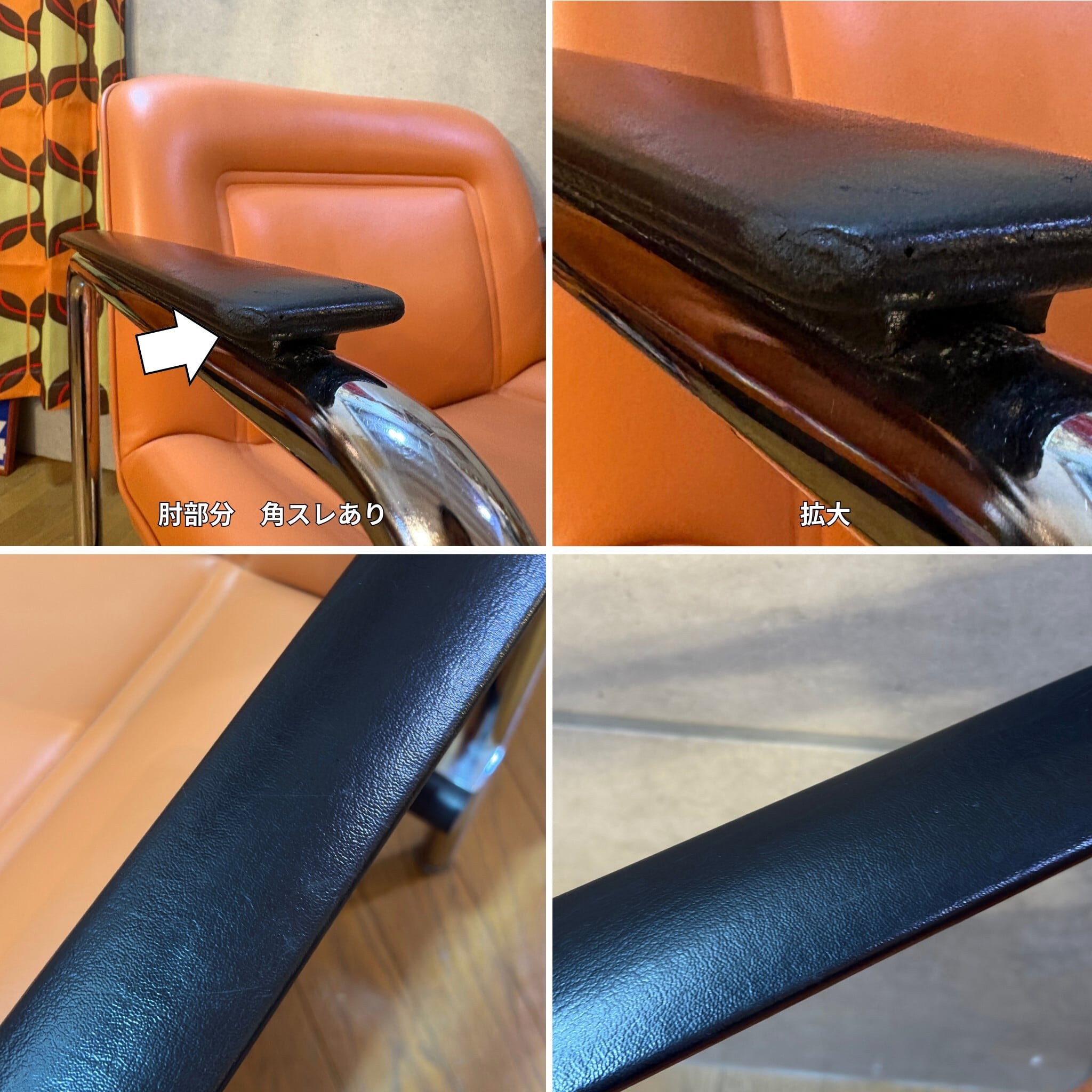 その他、肘掛け部分に角の擦れ・座面端の縫製の開き(接着剤で補強済)・黒い金属部分の傷などがございます。それぞれ画像でご確認下さい。