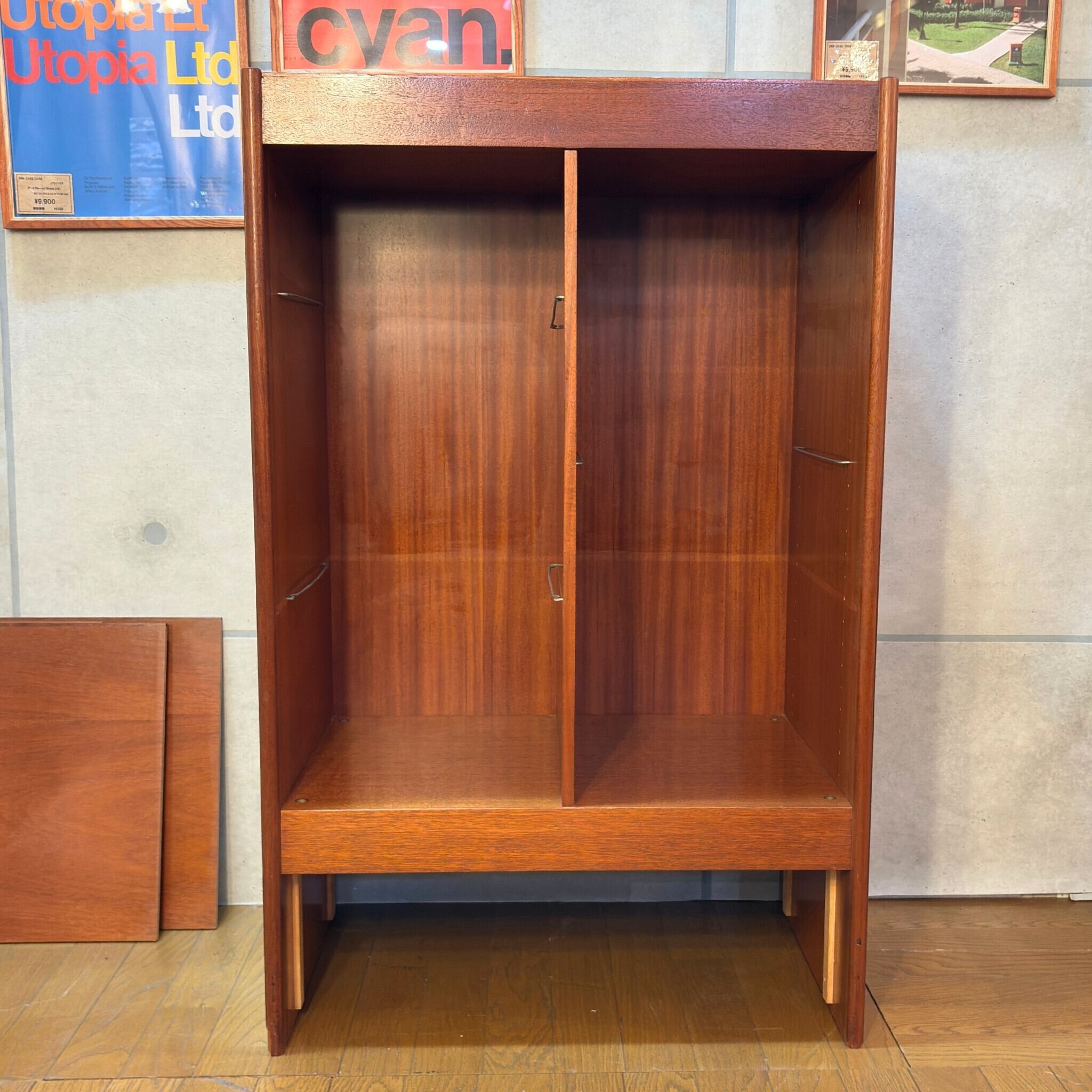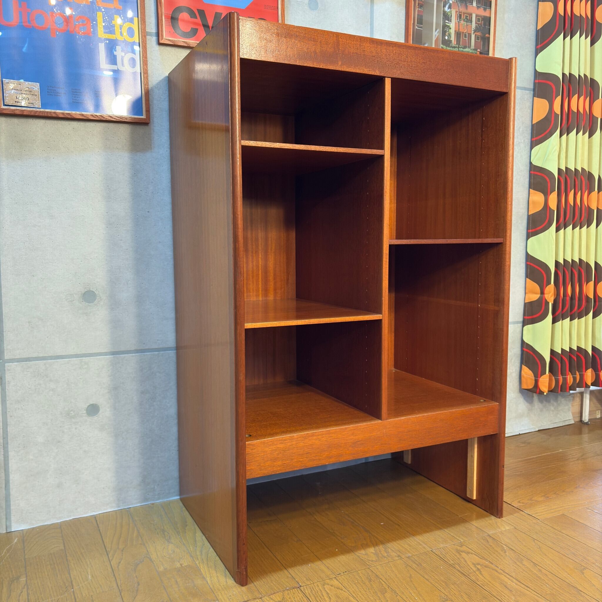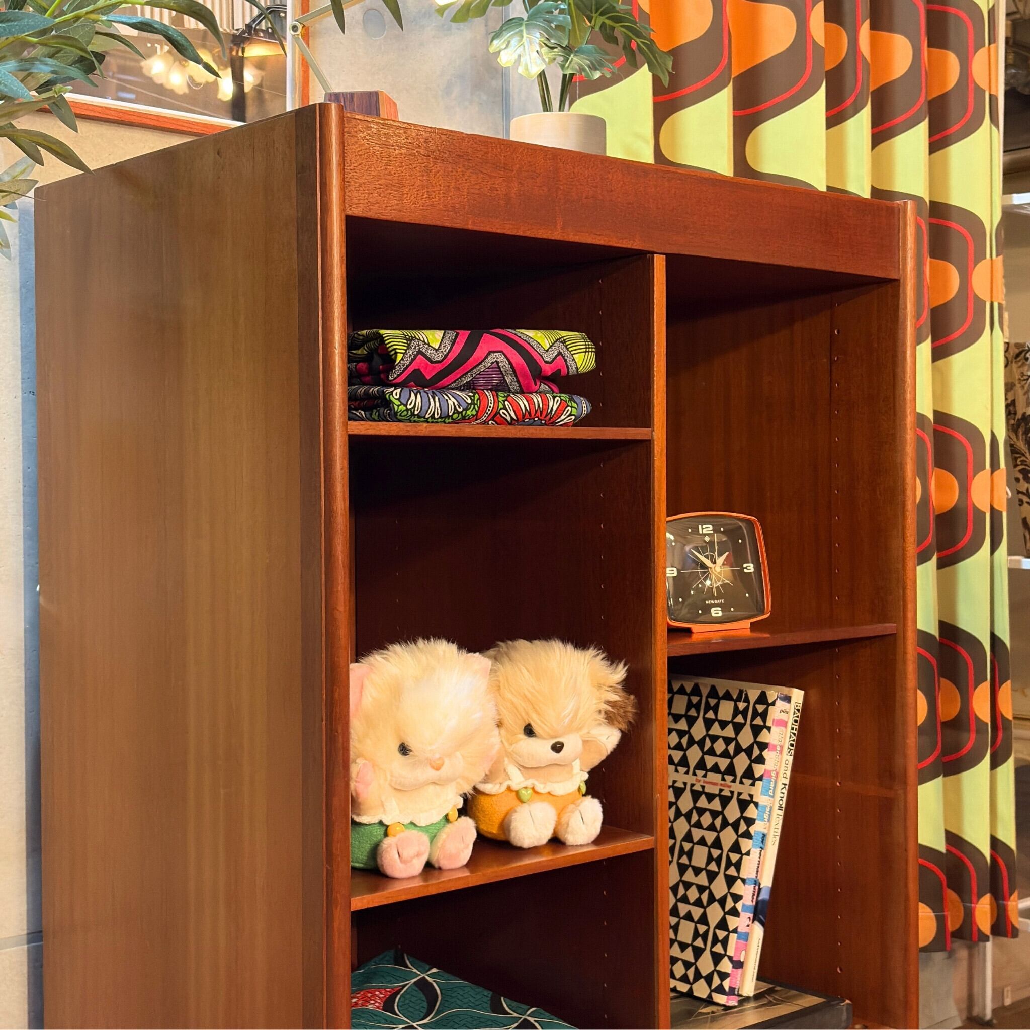 コンパクトな幅65cm&高さ103cmというサイズ感はお部屋に圧迫感を与えず、それでいて十分な収納力を提供します。棚板の位置を支える金属製バーの仕様は北欧デザインが最も洗練されていた時代の象徴的なディテールです。