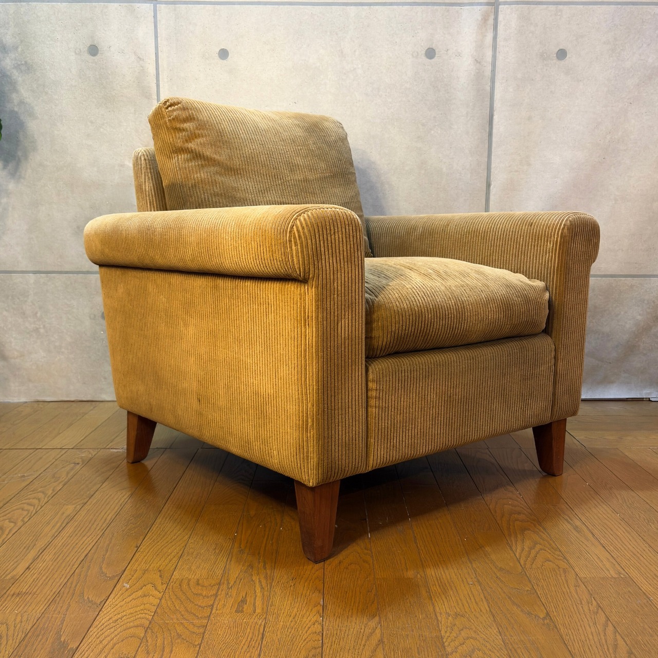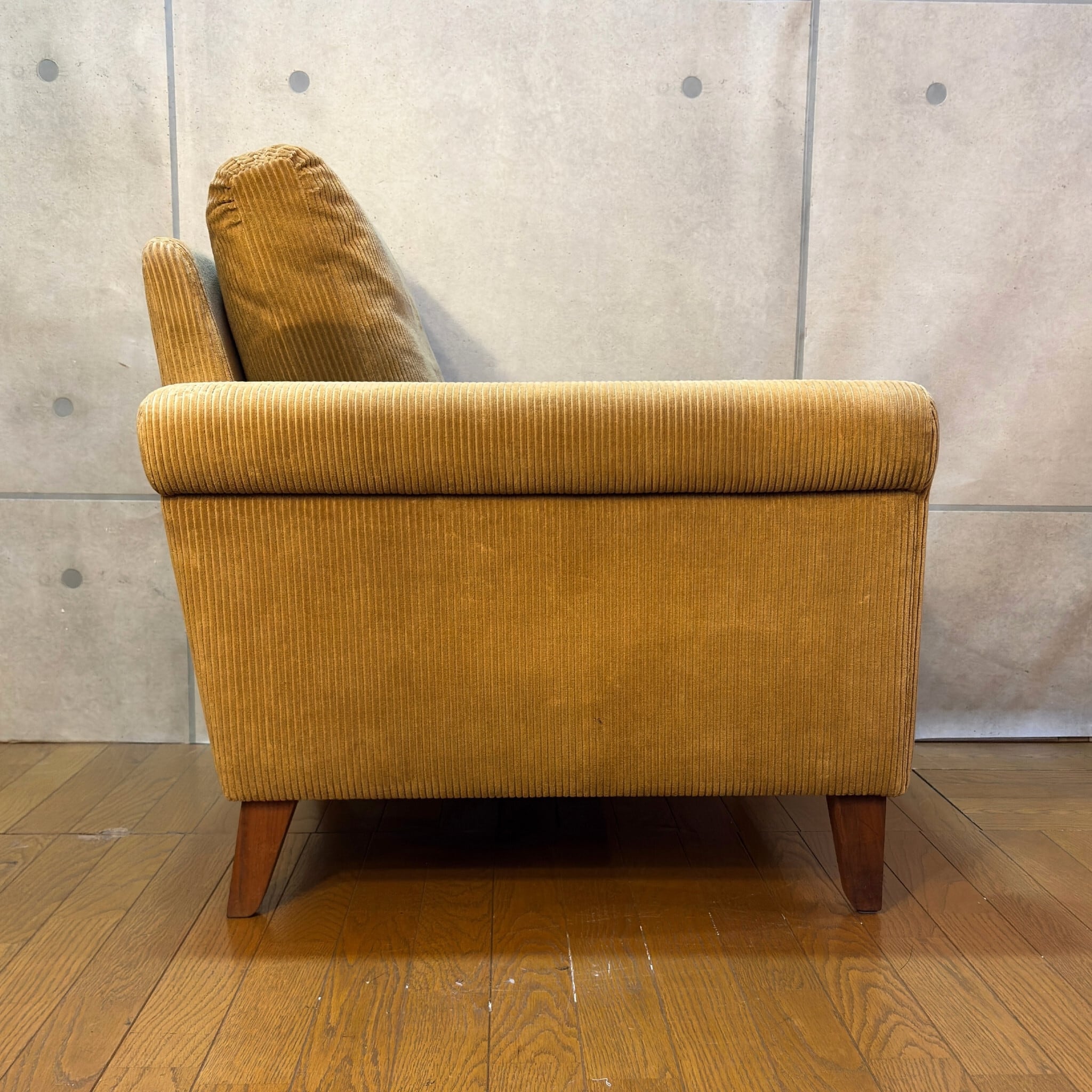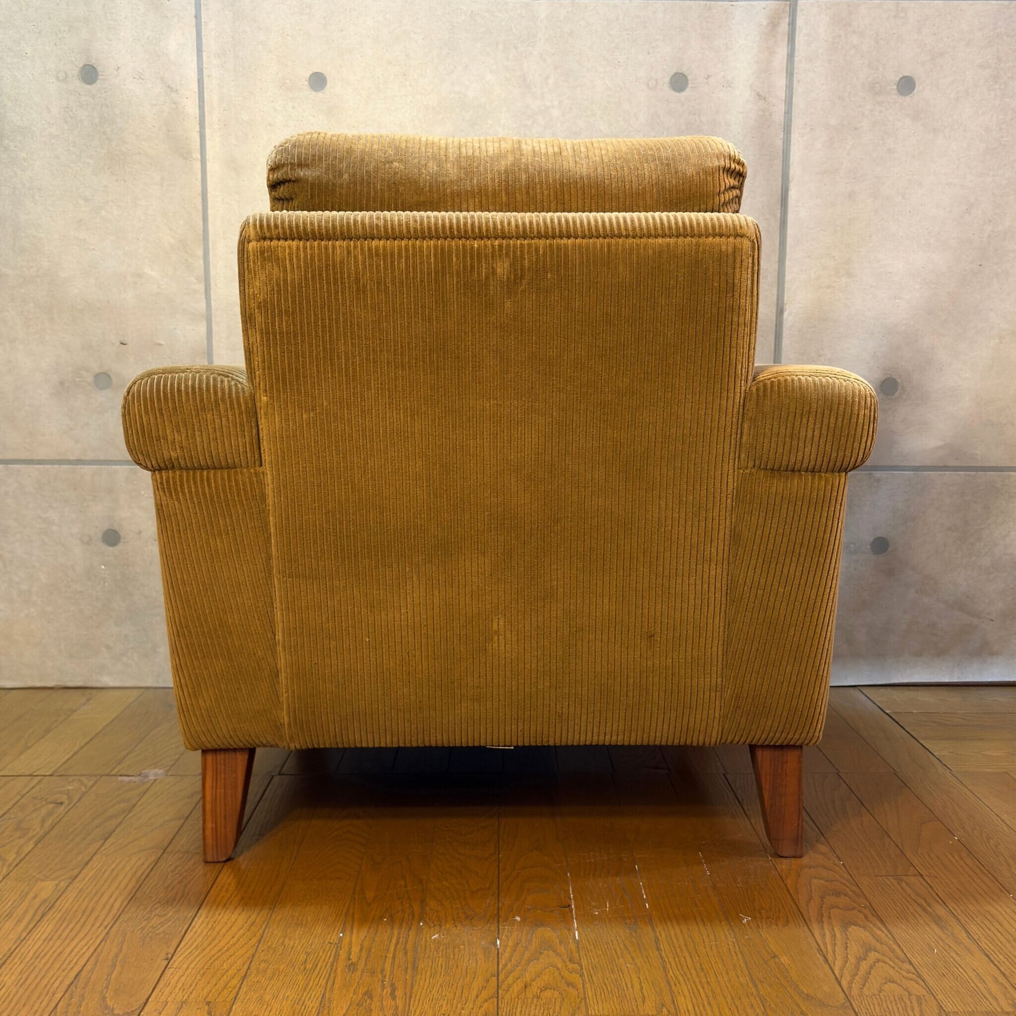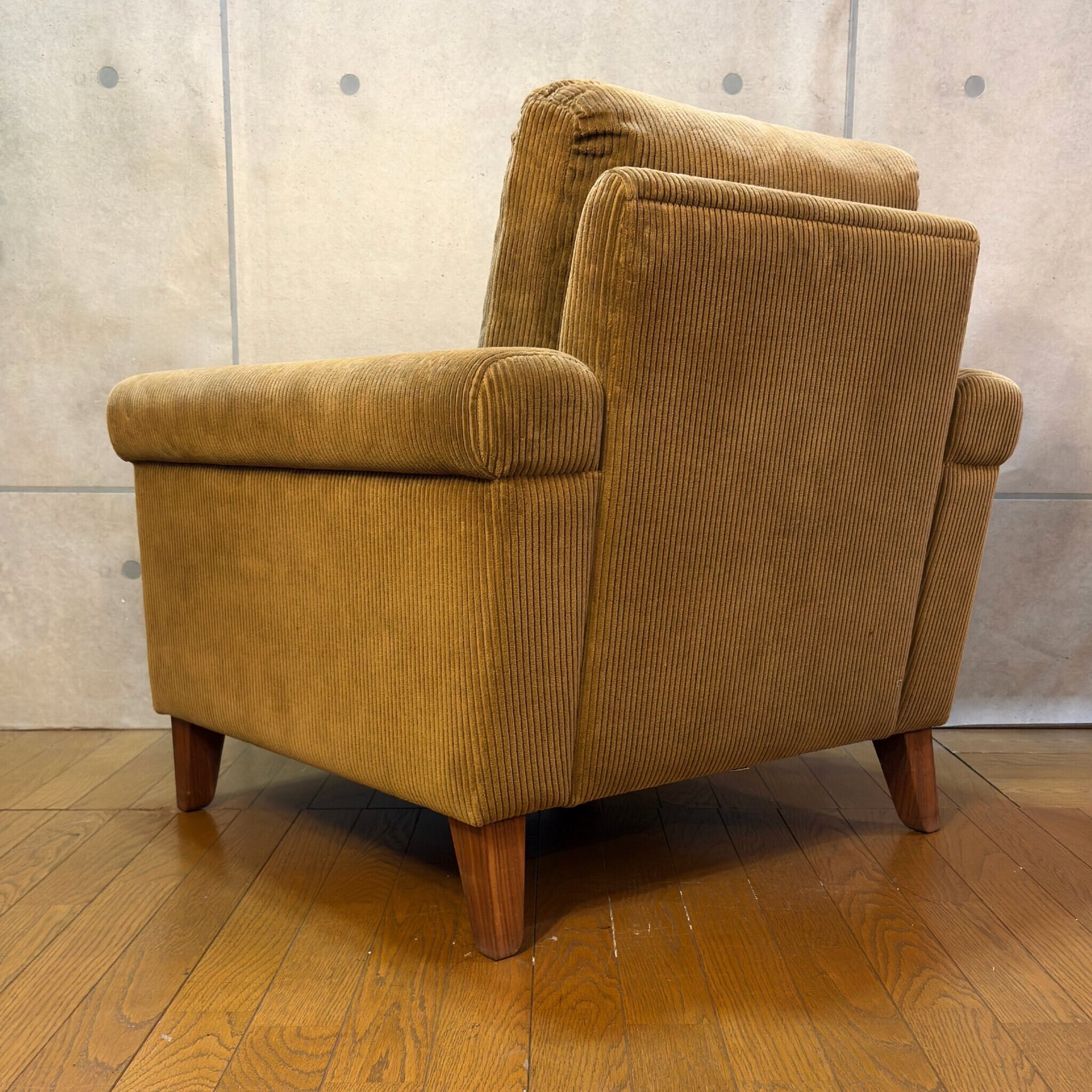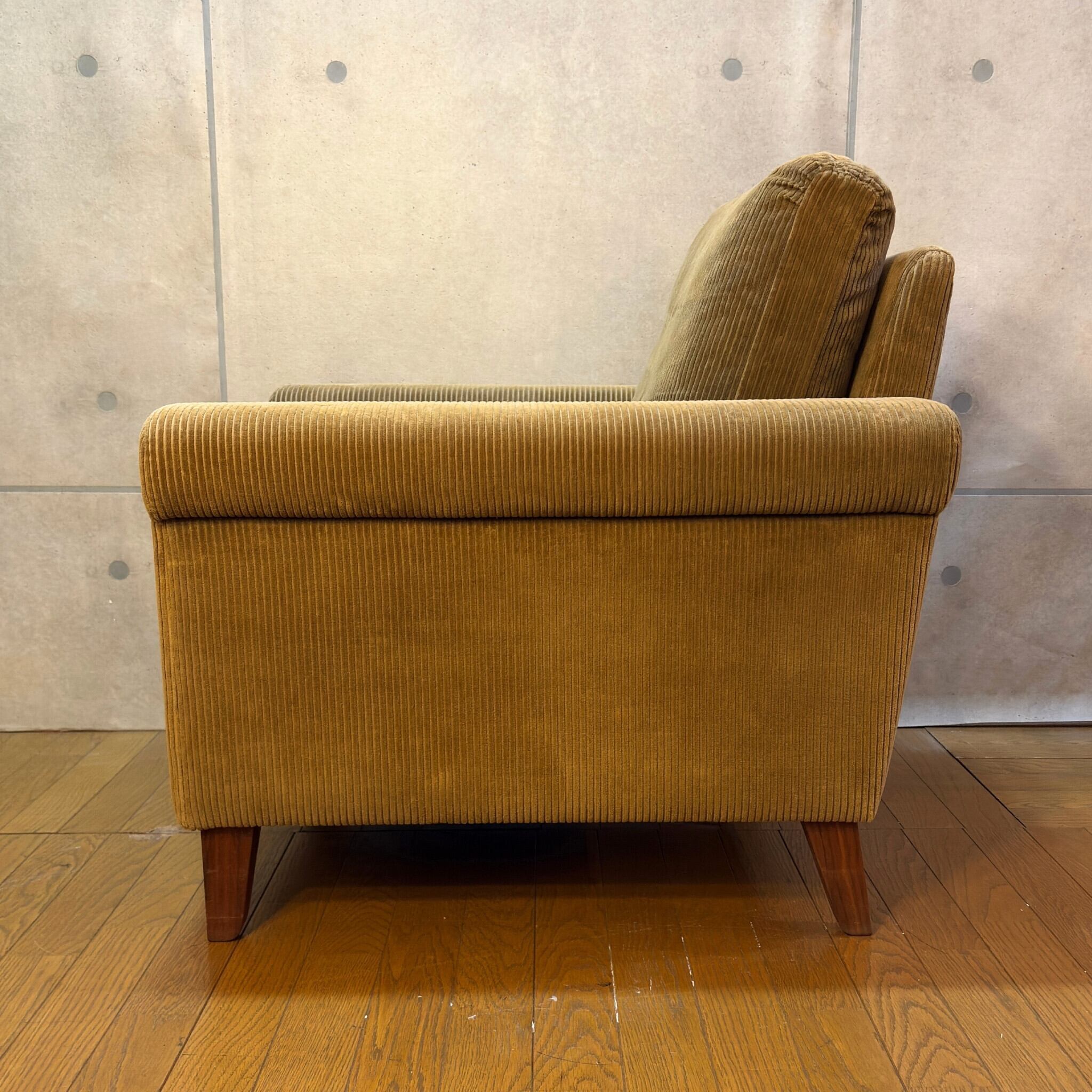 本商品はコーデュロイのブラッシングと脚部ウォールナット材のクリーニング、及びワックスによるメンテナンスを施しています。