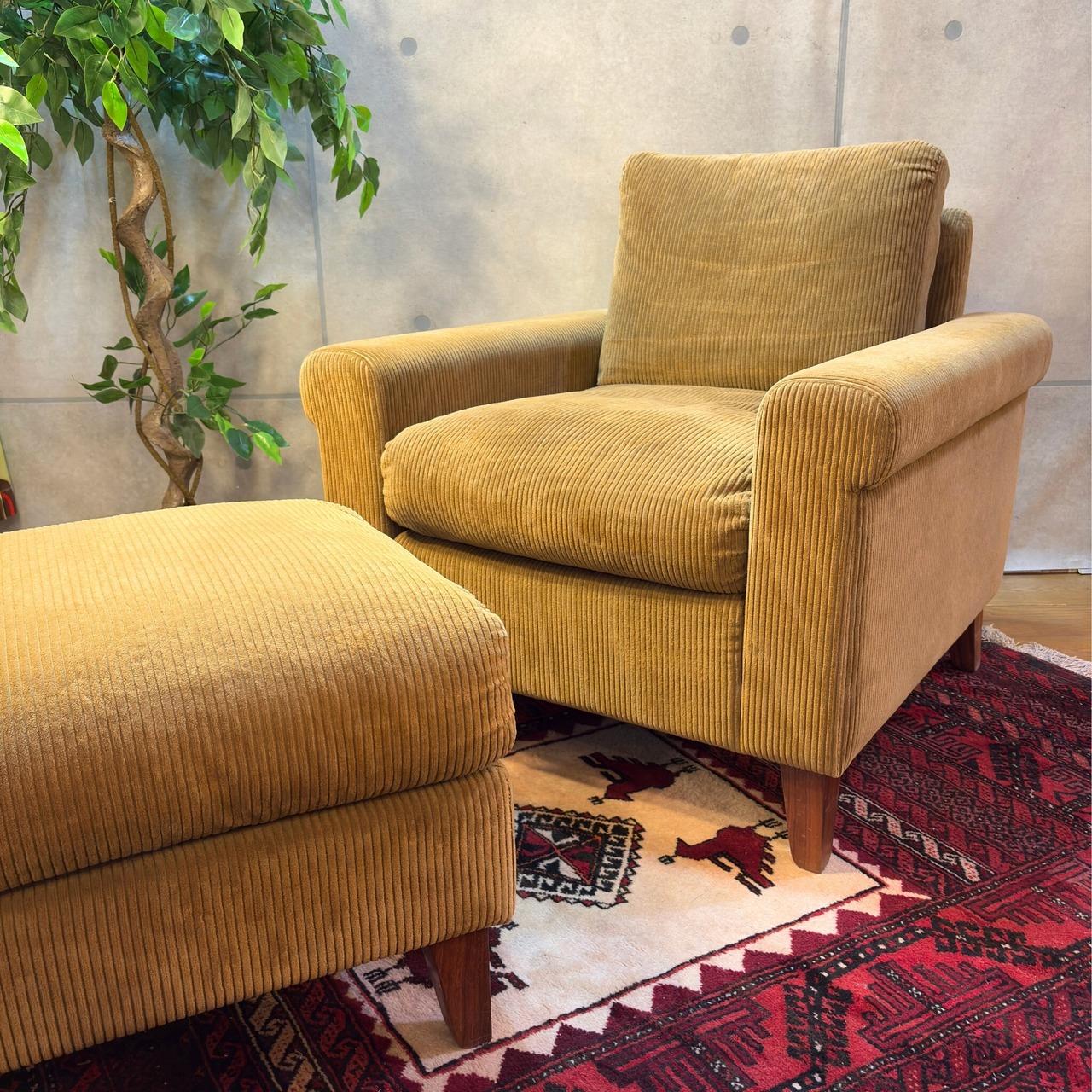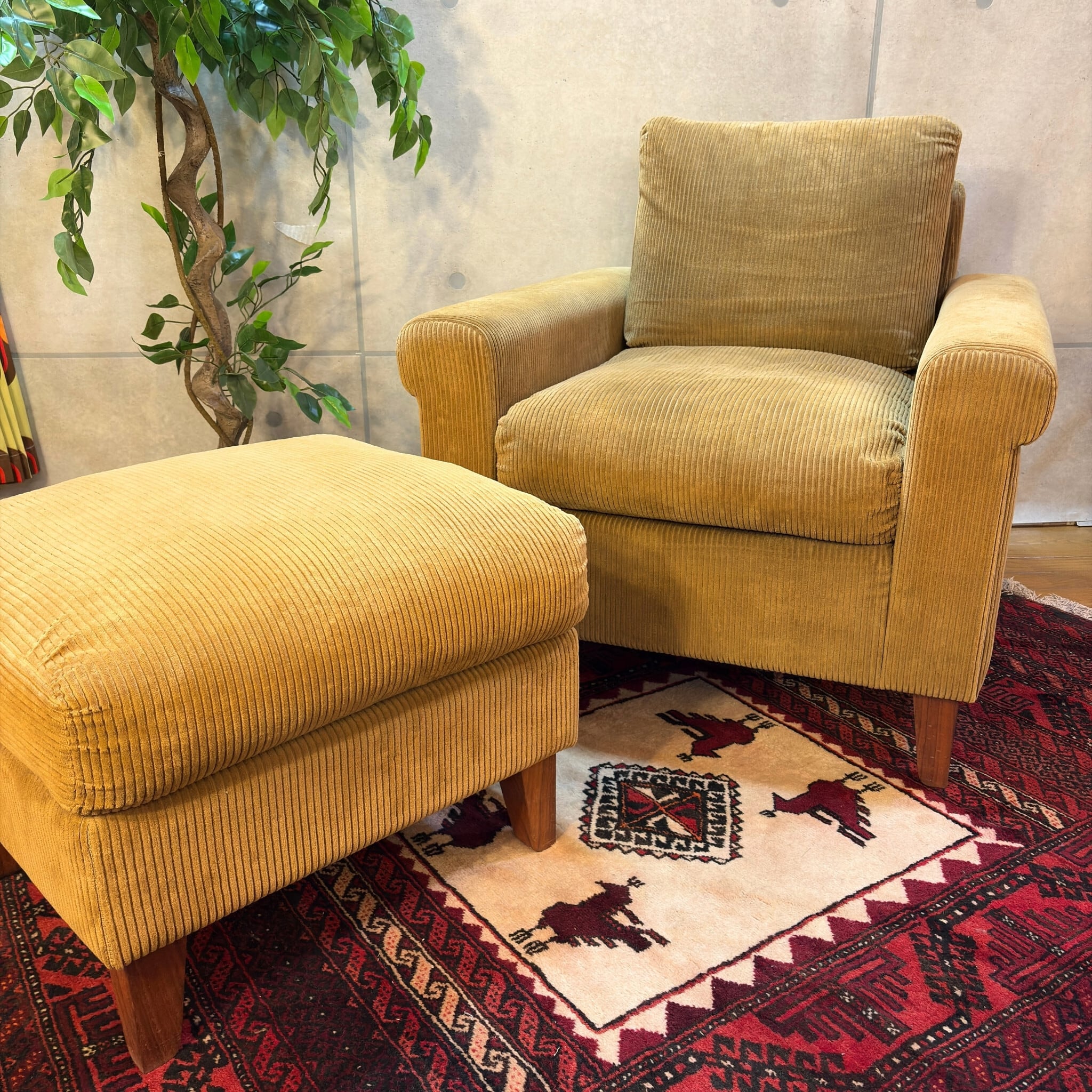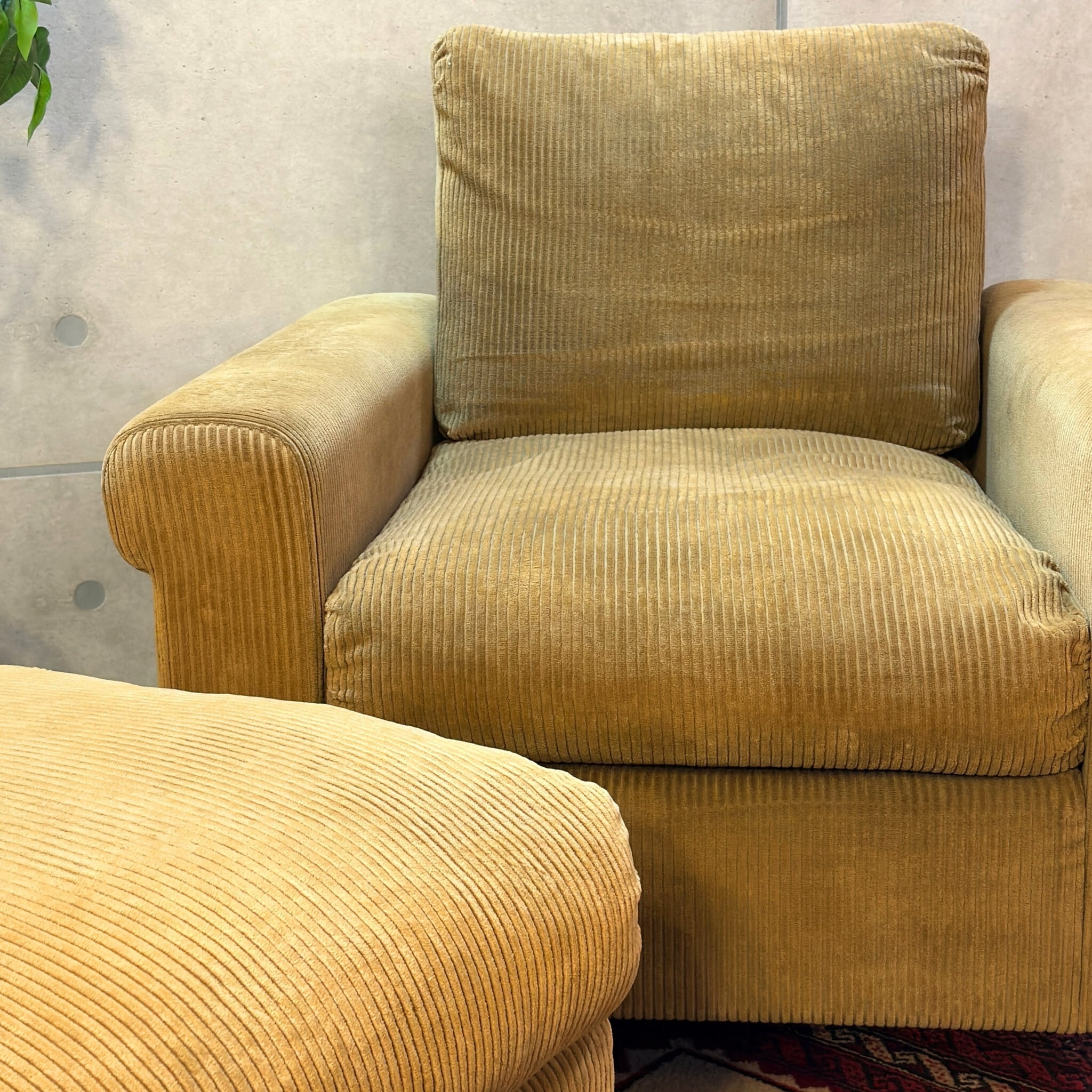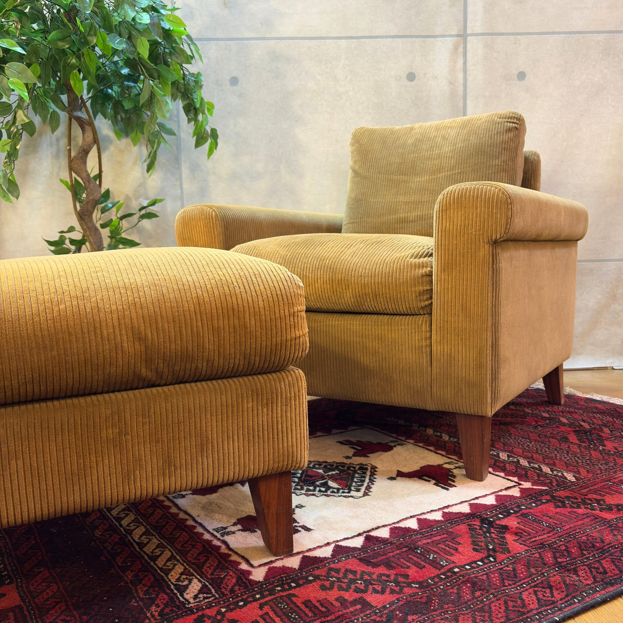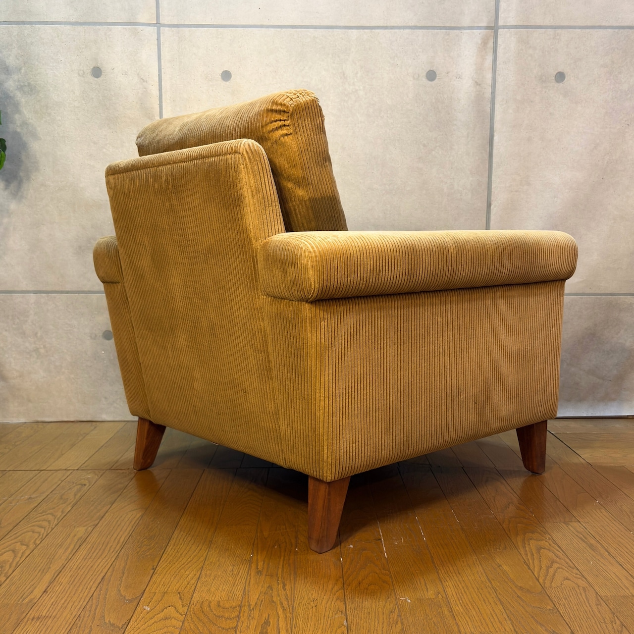 本商品はコーデュロイのブラッシングと脚部ウォールナット材のクリーニング、及びワックスによるメンテナンスを施しています。