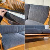 クッションには多少の使用感が見られますが大きな汚れや破け、ヘタリは見当たりません。ウェービングベルトの緩みもなく、中古品としては良好な状態だと思います。