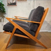 ヴィンテージ界隈においてこのトライアングル(三角形)を描くアームの意匠は一脚数十万円で取引される名作椅子にも共通するデザインです。壁際だけでなくお部屋の中央に配置して斜めや後ろかも眺めたい美しいフォルムです。