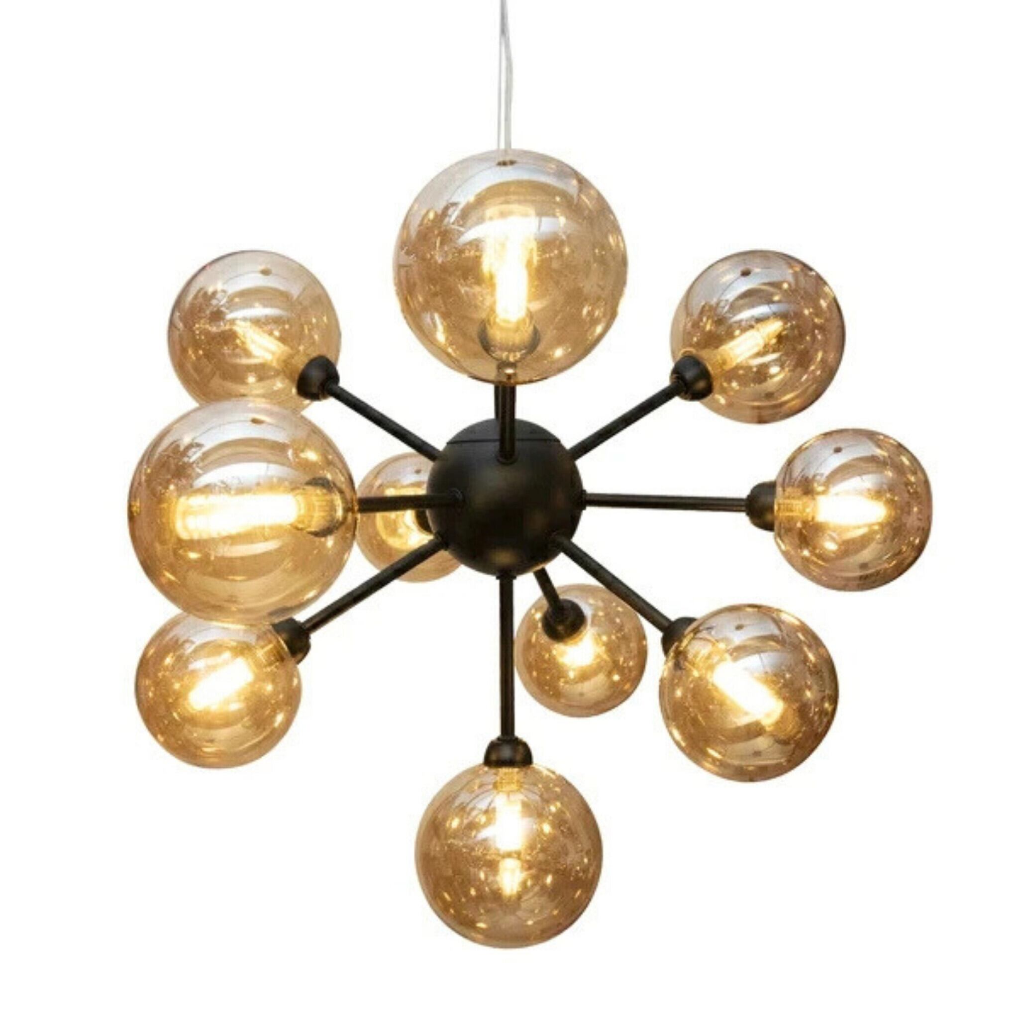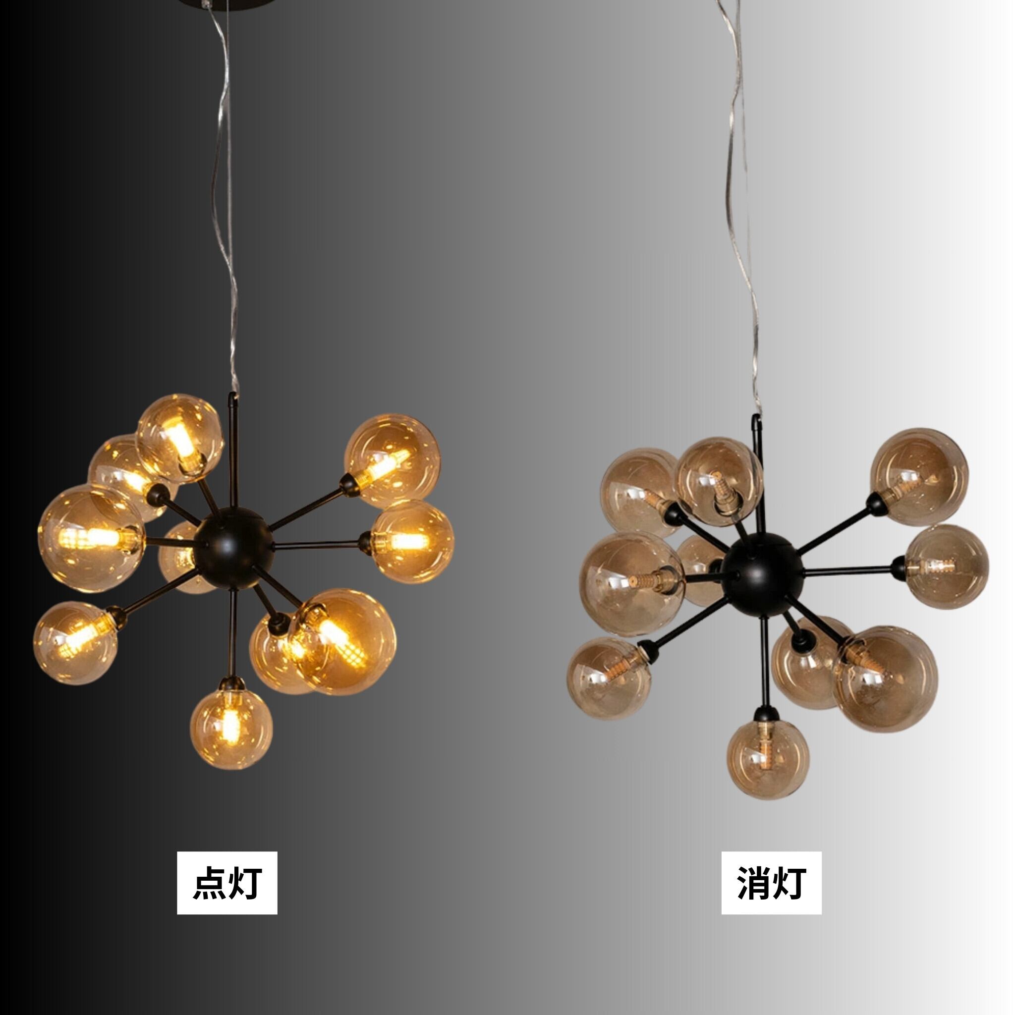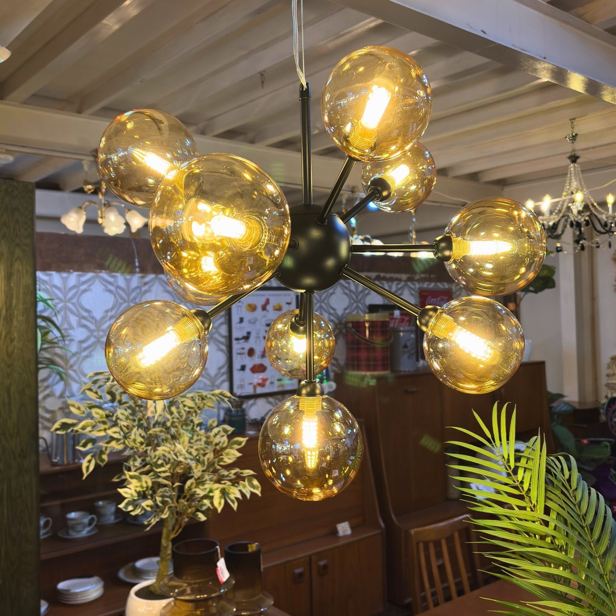 Contemporary / Sputnik Style 10-Light Chandelier スプートニク 10灯 ペンダントライト ブラックフレーム アンバーガラス 新品