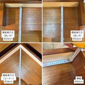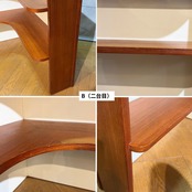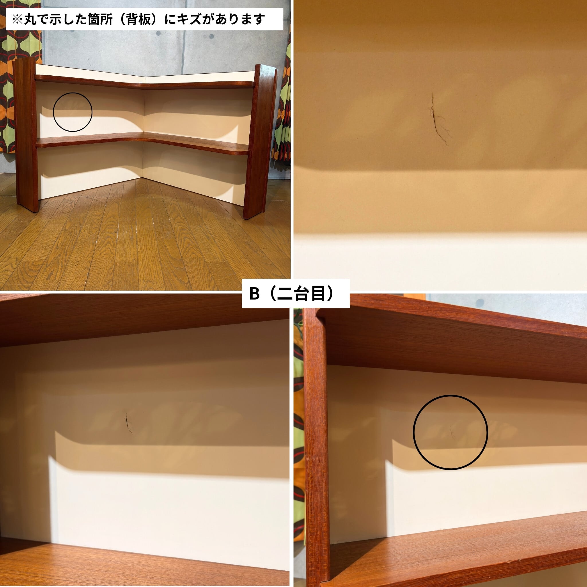 1台(B)に関しまして、背板の白い化粧面に約3cm程度のクラックがあります(写真参照)。芯材まで達する割れではなく強度への影響はありません。その他、棚縁や角部分に軽微な打痕や擦れがございます。