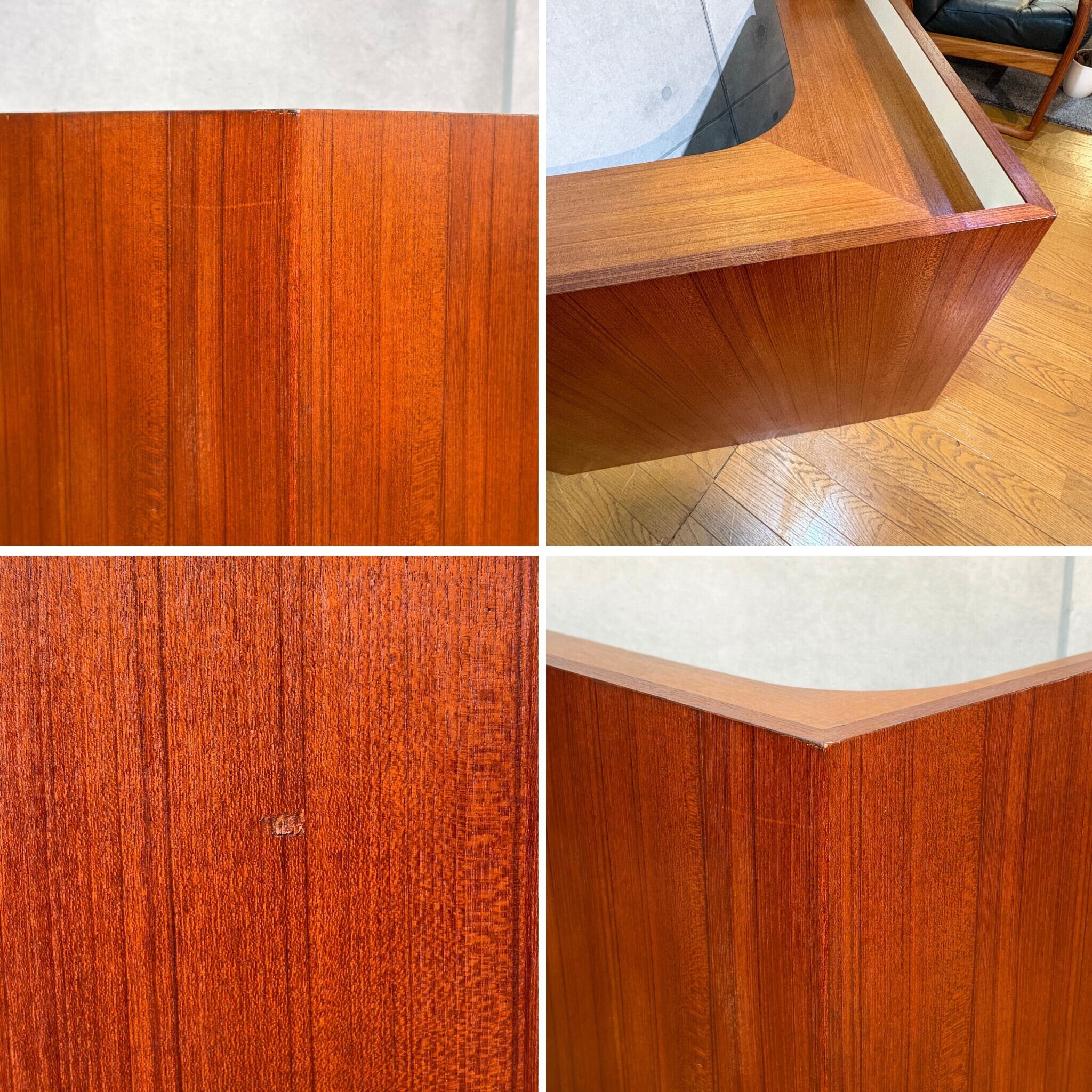 素材はチーク突板(合板芯)を使用。赤褐色の落ち着いた色味と経年による表情の変化があり、北欧ヴィンテージやミッドセンチュリー家具とも自然に馴染みます。