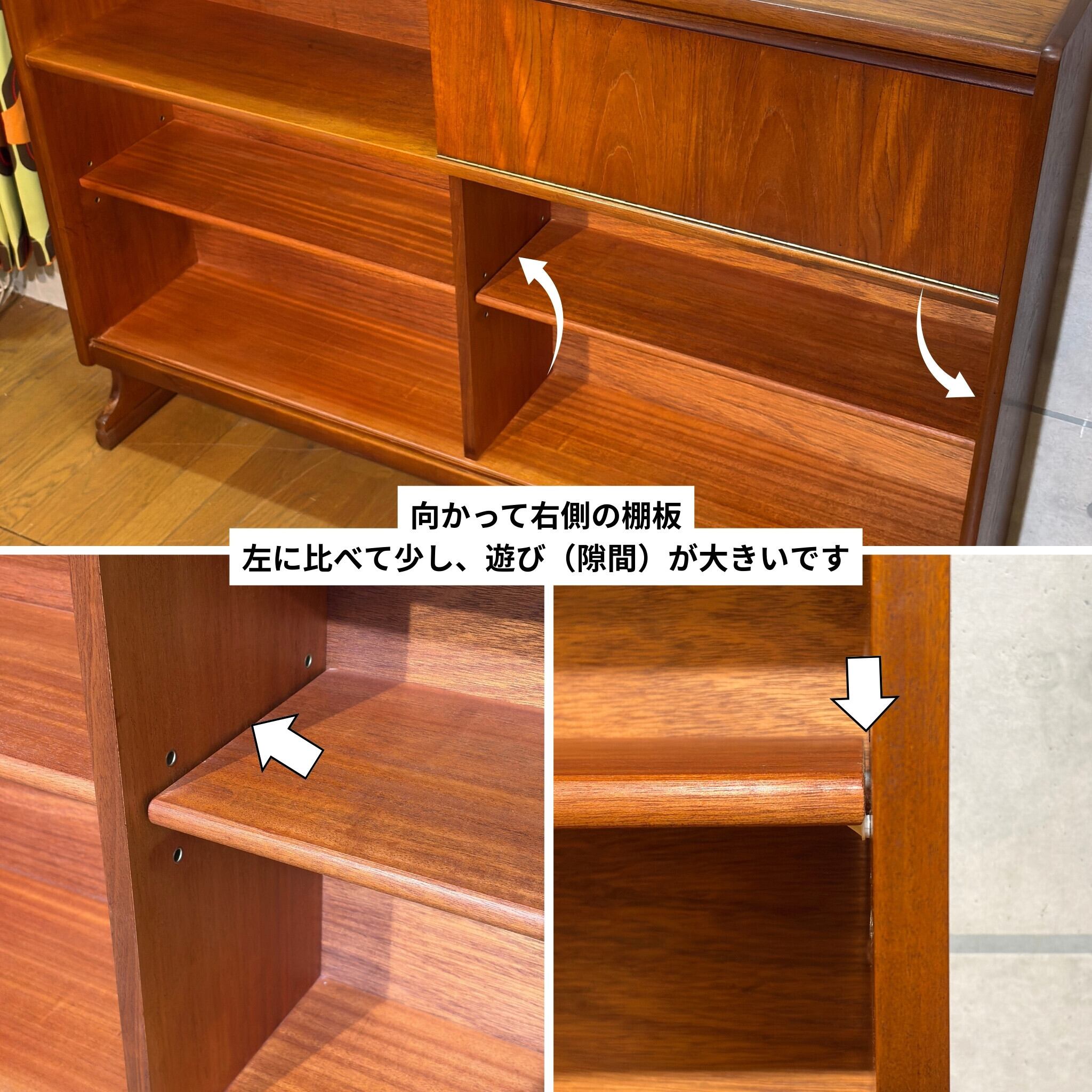 ・下段右側の棚板は左に比べて左右の遊び(隙間)がやや大きくなっております。