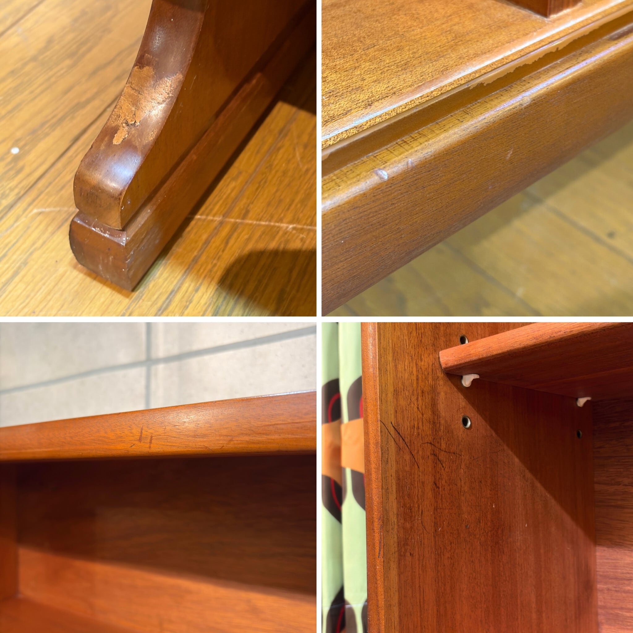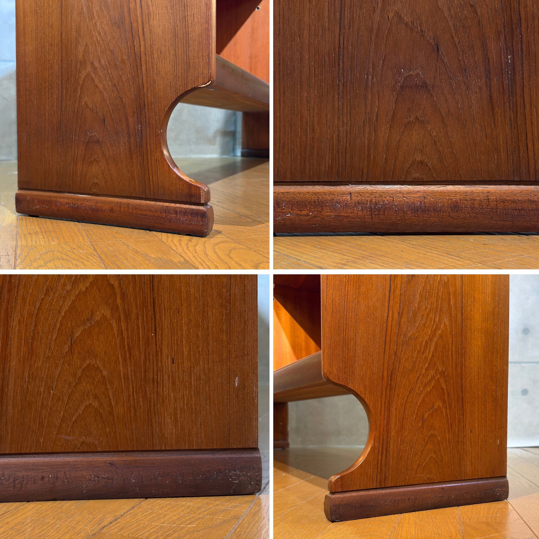・天板・側板・脚部にスレ、小キズ、打痕、縁の当てキズなど経年相応の使用感があります。
