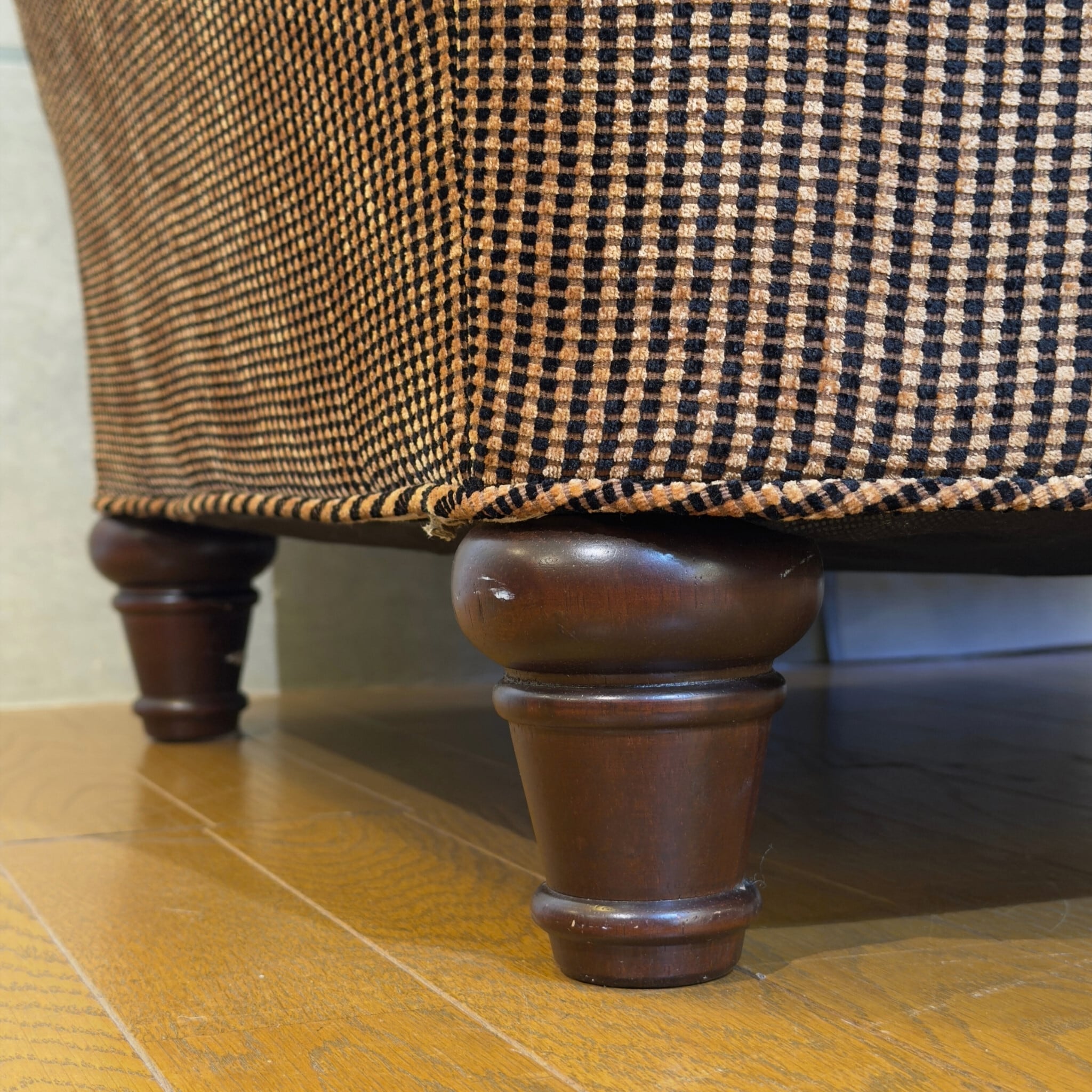 張地には経年使用による多少の擦れや毛羽立ち、糸のほつれ、脚部に傷などは見られますが大きな汚れや破れはなく、全体的に状態のよいユーズド品と言えると思います。構造面での大きながたつきやヘタリ、使用上に支障のある箇所はありません。