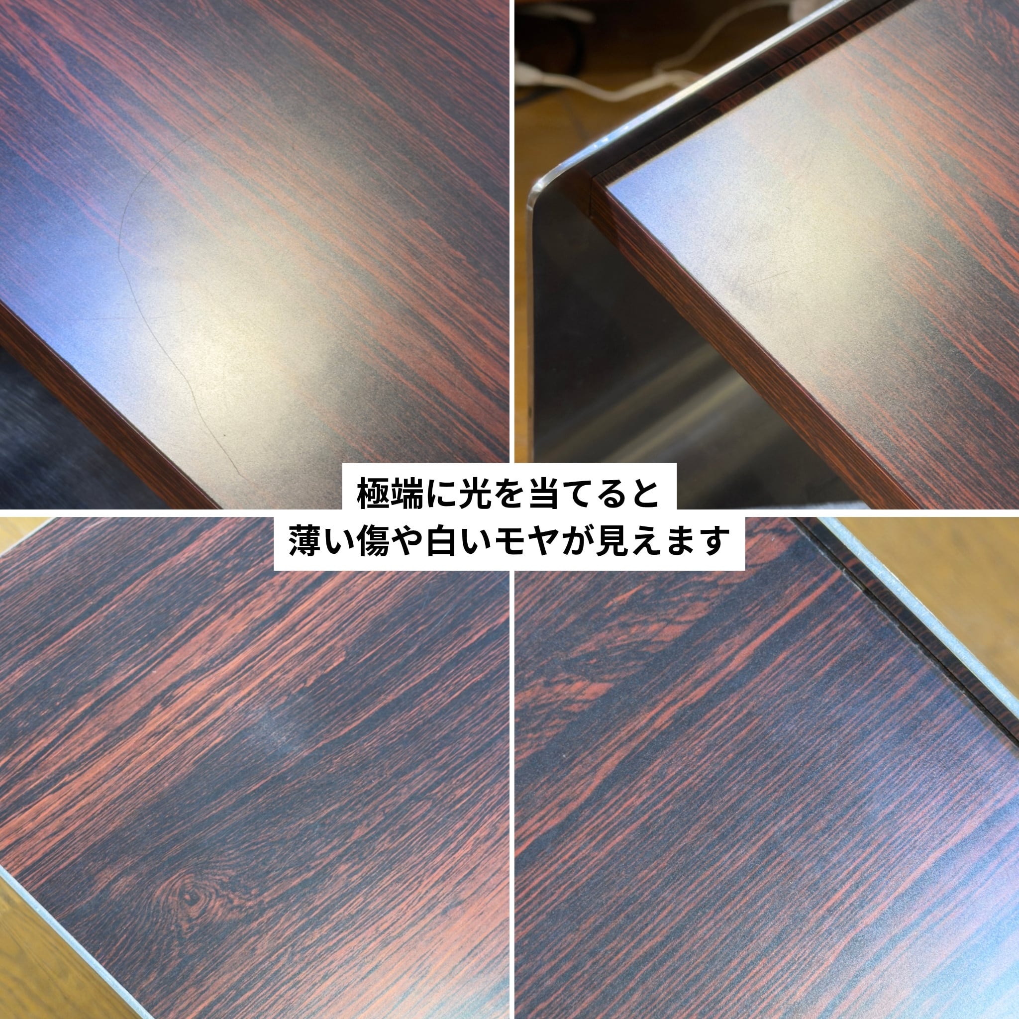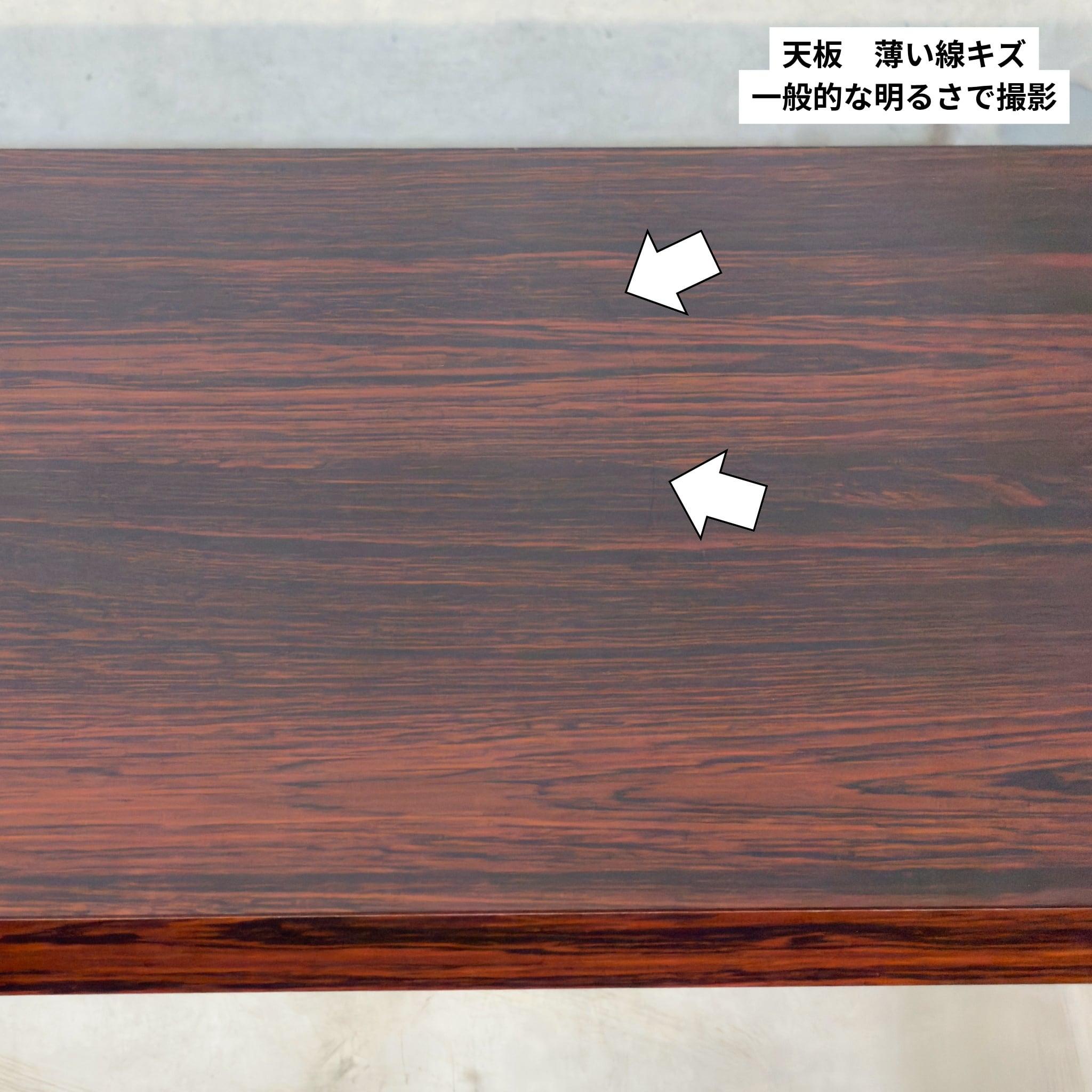 天板には光の加減や見る角度によって見える薄い線キズがあります。極端に光を当てて撮影した画像を掲載していますのでご確認下さい。