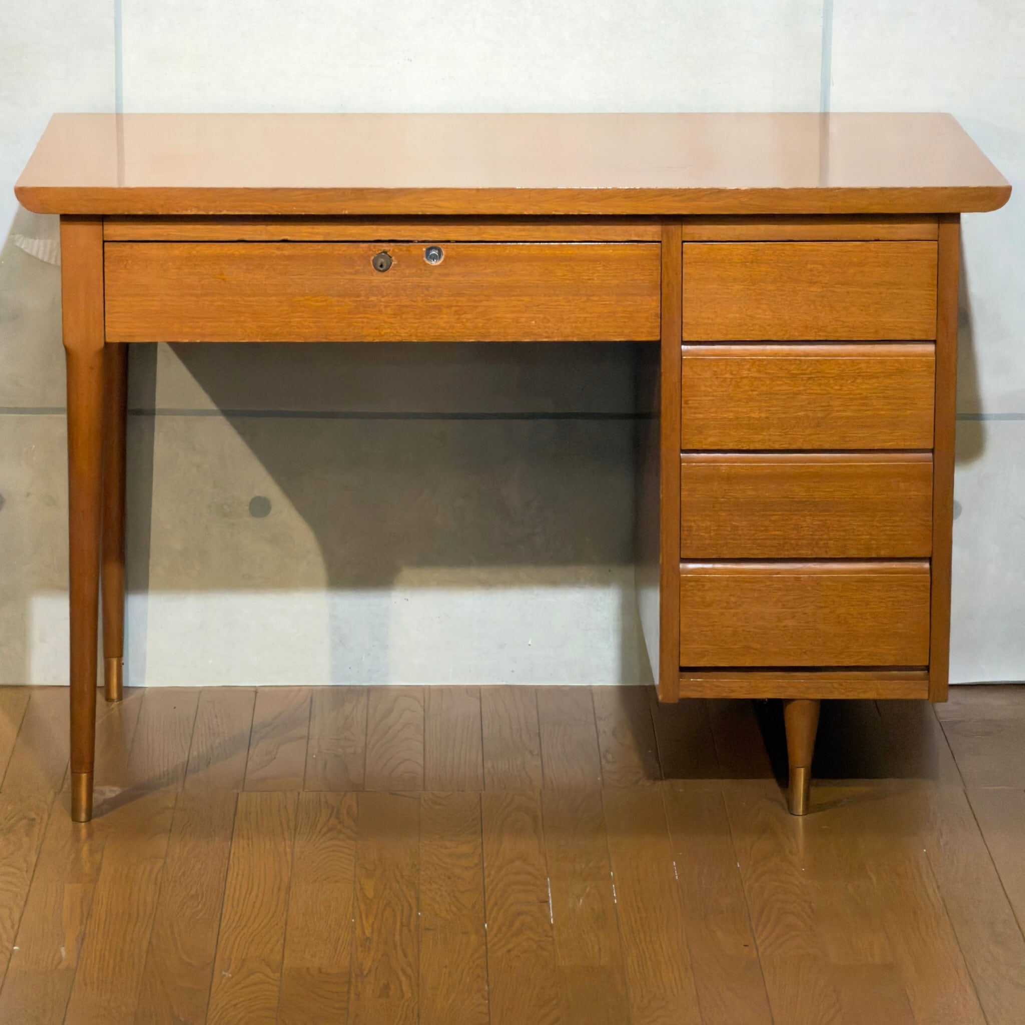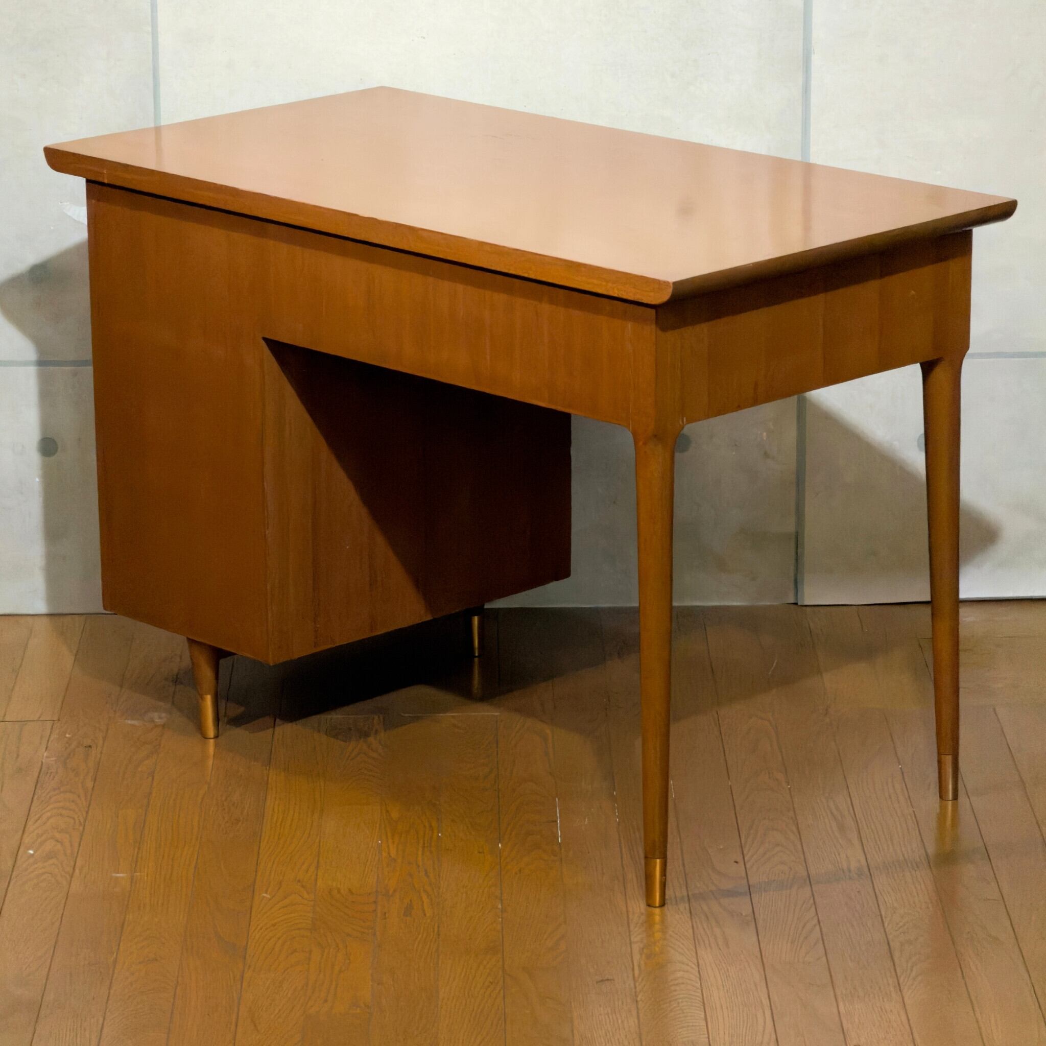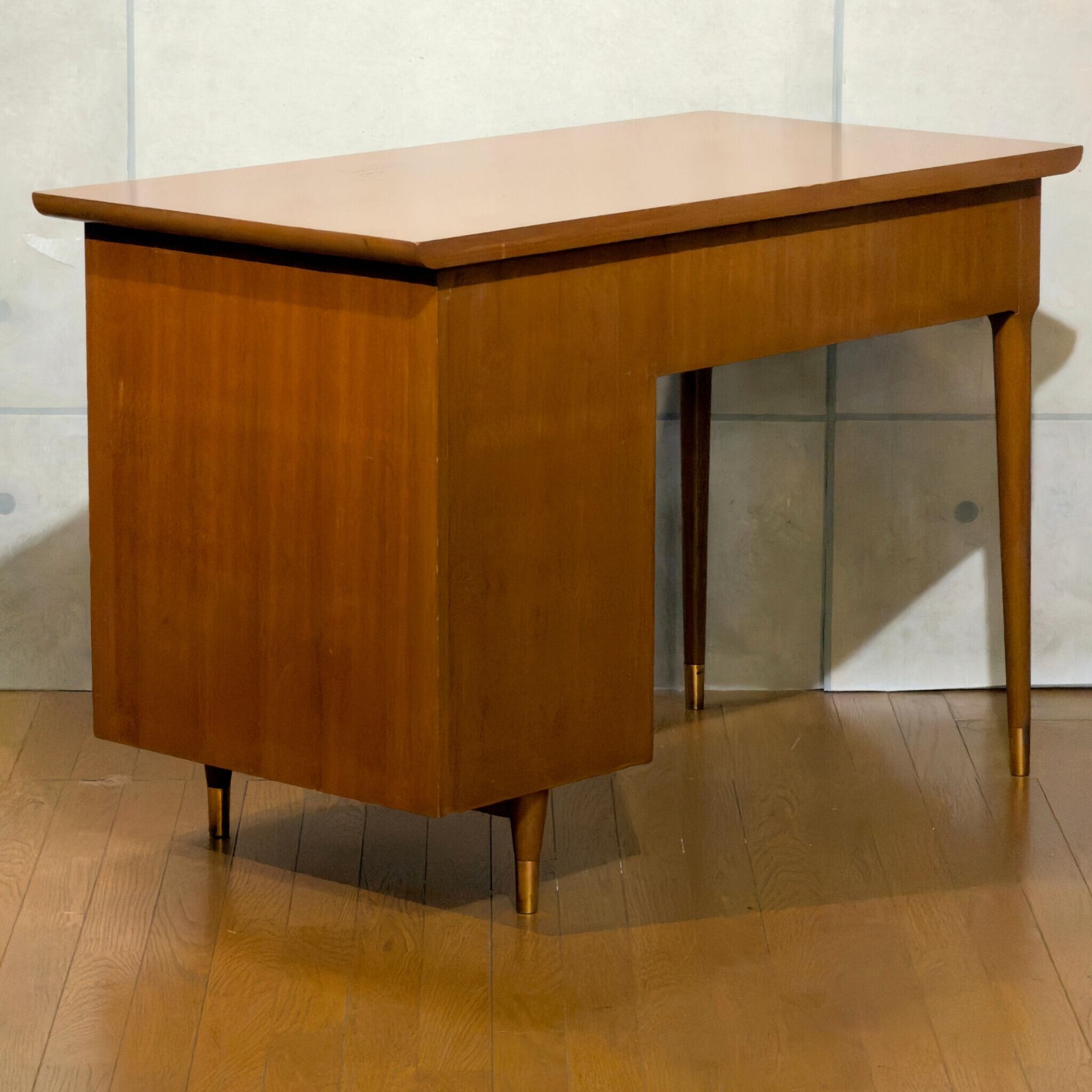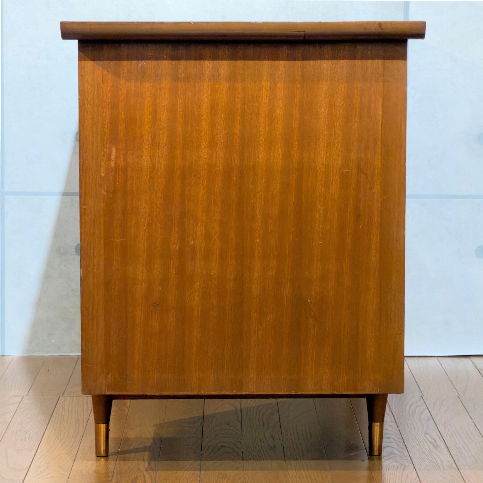 絶妙な色合いのチークブラウンに細いテーパード脚&脚先の真鍮キャップ。当時のアメリカンデザインを彷彿とさせる雰囲気があります。