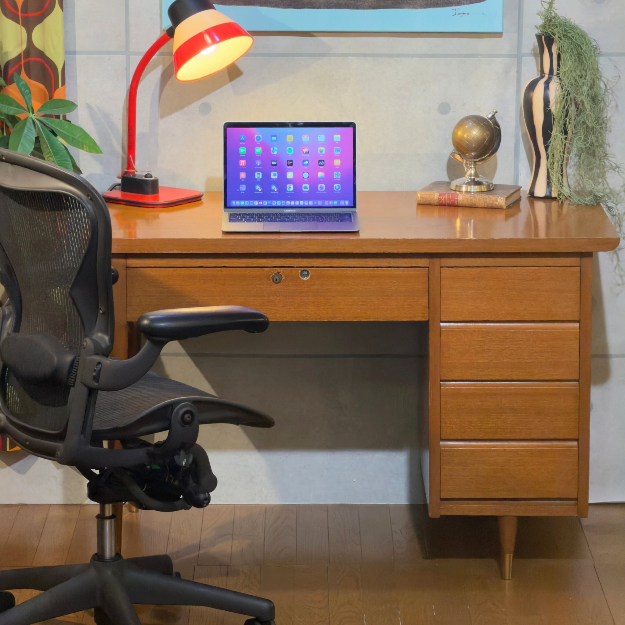 【VINTAGE】Japanese Mid-Century One-Pedestal Desk / ジャパンヴィンテージ 片袖デスク ミッドセンチュリー チーク 書斎机